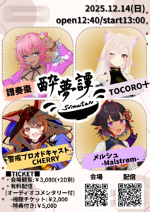 【時間】12:10open / 12:30start(配信スタート)