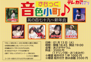 「すなっく音色小町♪ 其の百七十九~新年会~」 2026年1月13日 16:00 – 15日 22:00 「すなっく音色小町♪ 其の百七十九~新年会~」 出演:+α・羽澄あやは・琴浦マユウ・ 瀬戸瑞樹・咲良明里・Yukina 時間:開場18:45 開店19:00 料金:3500円(1ドリンク別・おつまみ付) ☆樽酒 桧升付き1杯 1000 円 ☆樽酒 桧升付き 飲み放題 3500 円 予約フォーム https://ws.formzu.net/fgen/S22992690/ *おつまみの用意の都合上前日までの予約を推奨しています