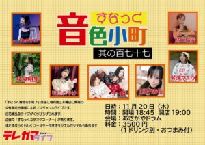 火今井結香・有佐美ひより・木ノ下ゆり・寿々木はるか・しおたん・榊音結依 PA・映像/けそ君 18:40open/19:00start 料金/3000円+1D ¥500~ *ご予約はチゲットにて(後日公開) *配信・ドリンク応援あり(後日公開) -